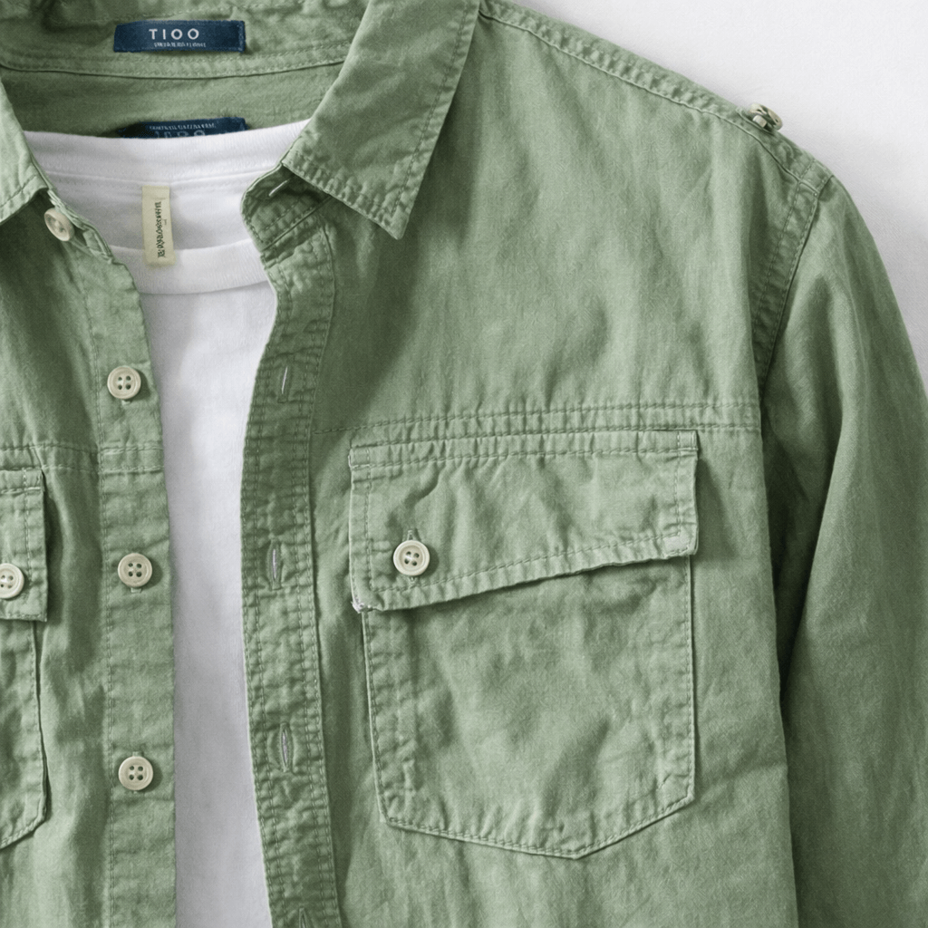 Độ bền cao: ít nhăn, giữ màu xanh rêu trầm ổn sau nhiều lần giặt.